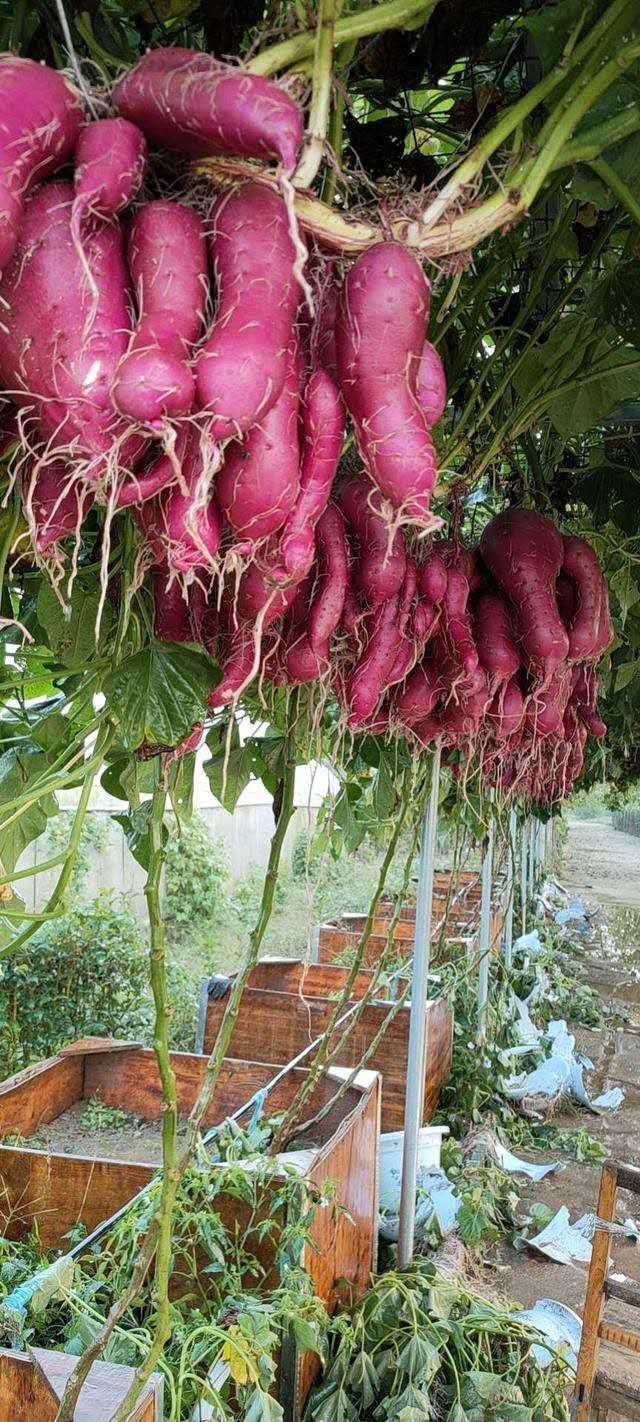 ?賈連東種植的“空中紅薯”,單株最大重約四十斤。賈連東向澎湃新聞表示,此項技術(shù)由四川農科院研發(fā),自己在2016年向四川農科院學(xué)習了此項技術(shù),此后在實(shí)際運用上對該技